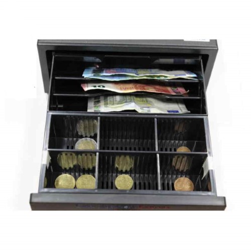 Μεταλλικό συρτάρι μεγάλου μεγέθους Με 4+1 (κρυφή) θέσεις για χαρτονομίσματα με μεταλλικά, ανθεκτικά..