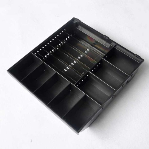 Εσωτερικό συρτάρι ταμειακής μηχανής μεγάλο, πλαστικό. Με 4 θέσεις χαρτονομισμάτων με μεταλλικά, ανθ..