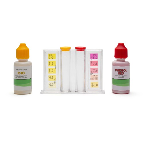 1. Αφού γεμίσουμε την πισίνα με νερό, ελεγχουμε το σετ ελέγχου το pH του, το οποίο πρέπει να είναι μεταξύ 7.2 και 7.8