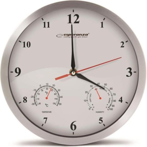 Ρολόι Τοίχου. Με Μετρητή Θερμοκρασίας και Υγρασίας. Χρώμα: Λευκό/Μαύρο. Διάμετρος: 30cm...