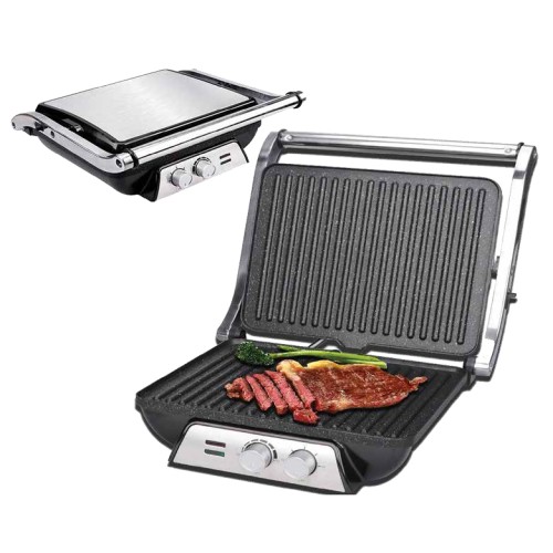 χωρητικοτητα για 4 τοστ ρυθμιζομενος θερμοστατης INOX σωμα με ισιες αντικολλ. πλακες χαλαζια δυν..
