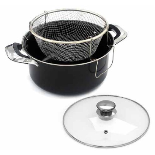Κατσαρόλα με Φρυτούρα. Διαθέτει και Γυάλινο Καπάκι. Προτεινόμενη Χρήση για Υγραέριο. Σε Μαύρο Χρώ..