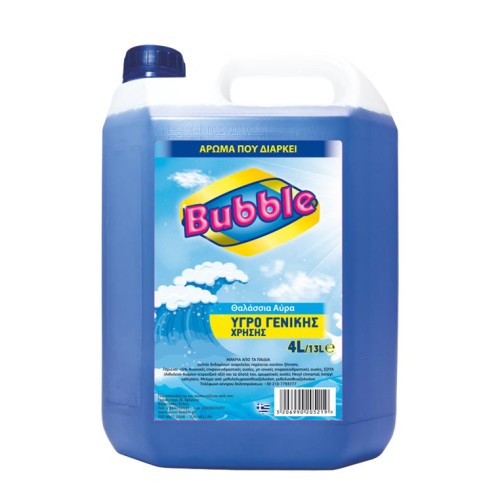 Υγρό γενικής χρήσης 4L με άρωμα Θαλάσσια Αύρα, BUBBLE Μοναδική λάμψη και καθαριότητα για όλους τους..