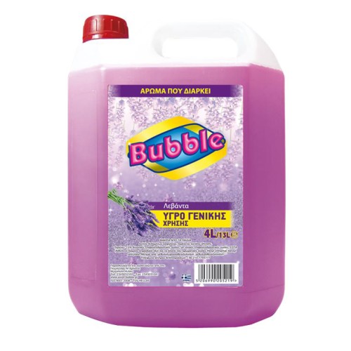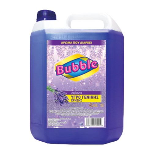 Υγρό γενικής χρήσης 4L με άρωμα Λεβάντα, BUBBLE Μοναδική λάμψη και καθαριότητα για όλους τους χώρου..