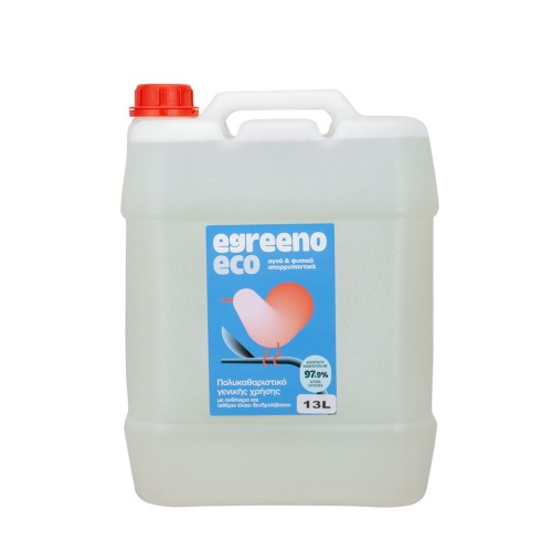 Αγνό υγρό πολυκαθαριστικό γενικής χρήσης, Συμπυκνωμένο, 13Lt, υποαλλεργικό, EGREENO-GE/13LT
