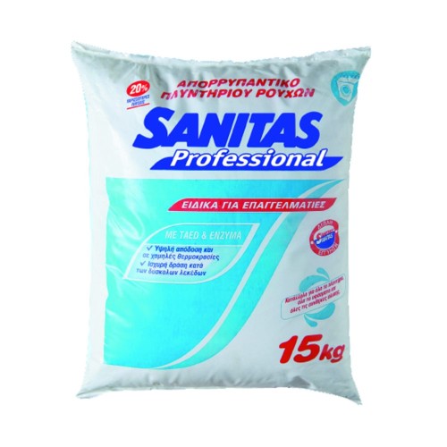 Απορρυπαντικό Πλυντηρίων Ρούχων σε σκόνη με TAED & ENZYMA, 15kg, SANITAS PRO Αποτελεσματική δράση α..