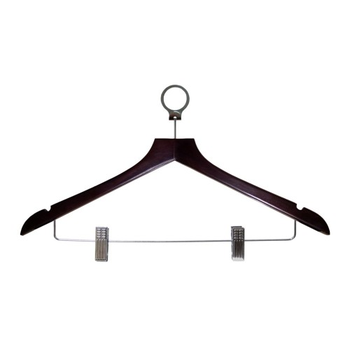 Αντικλεπτική κρεμάστρα ξύλινη, σε απόχρωση καρυδιάς, με 2 ρυθμιζόμενα clips/μανταλάκια συσκευασία 10 τεμαχίων OEM 45036