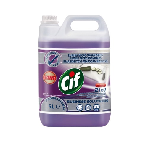 Συμπυκνωμένο καθαριστικό και απολυμαντικό 5lt, χρήση σε χώρους επεξεργασίας τροφίμων, Cif 2 σε 1 κα..