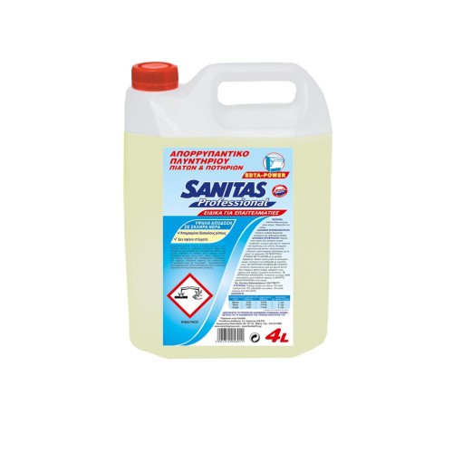 Υγρό Απορρ. Πλυντηρίων Πιάτων και Ποτηριών, 4 Lt, SANITAS PRO Με τη δύναμη του ενεργού χλωρίου. Αφ..