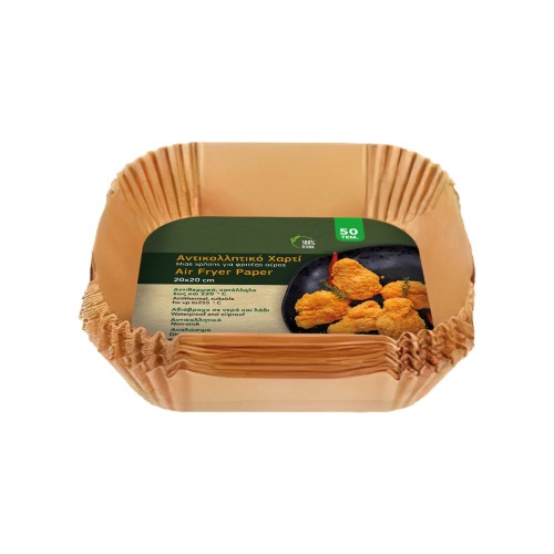 Πακέτο 50 αντικολλητικά χαρτιά για Air Fryer, τετράγωνα 20x20Υ4.5cm, μίας χρήσης  ..