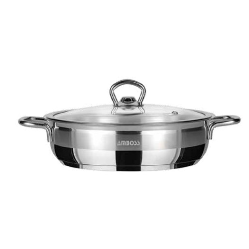 ΤΗΓΑΝΙ ΙΝΟΧ με Γυάλινο Καπάκι 28cm AMBOSS SAP-4806