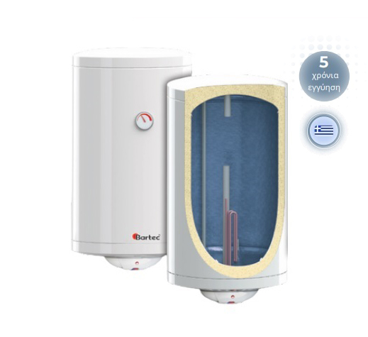 Ηλεκτρικοί θερμοσίφωνες υψηλής απόδοσης με μεταλλικό περίβλημα σε RAL 9010. Εσωτερική επίστρωση με σμάλτο τιτανίου. Σκληρή μόνωση πολυουρεθάνης 20mm. Ανόδιο μαγνησίου για προστασία από την διάβρωση. Φλάντζα επιθεώρησης Φ132. Ηλεκτρική αντίσταση 3kw. Θερμοστάτης ρυθμιζόμενος εξωτερικά με διπλό κύκλωμα προστασίας. Ένδειξη θερμοκρασίας. Βαλβίδα εκτόνωσης 8bar. Χαμηλή κατανάλωση ισχύς. Μικρές απαιτήσεις ηλεκτρικής εγκατάστασης. Διατίθενται σε κάθετους, οριζόντιους και δαπέδου.